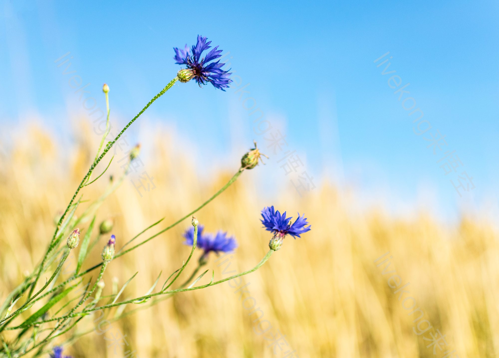 阳光下蓝色矢车菊花