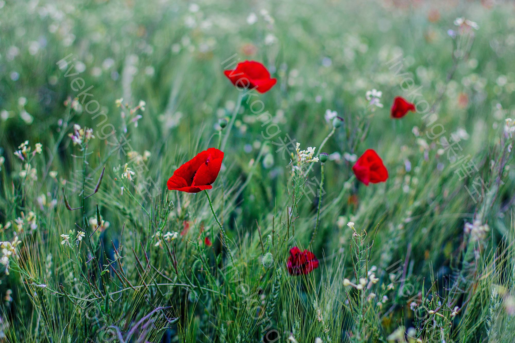 草地红色虞美人