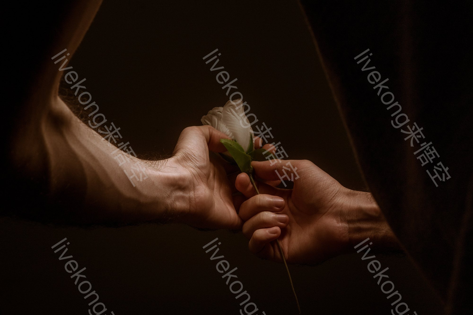 手握玫瑰花