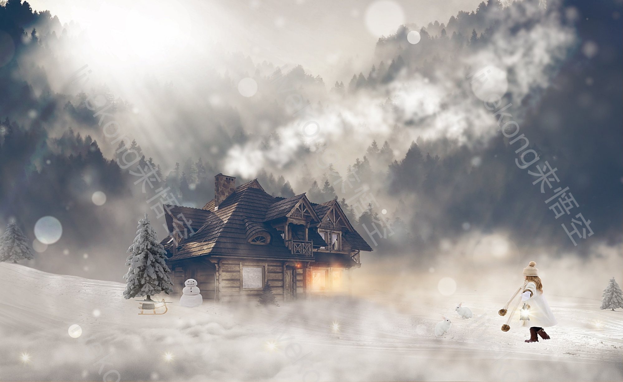 简介:  树林、梦幻、森林小屋、童话场景、童话小屋、雪地、雪景、