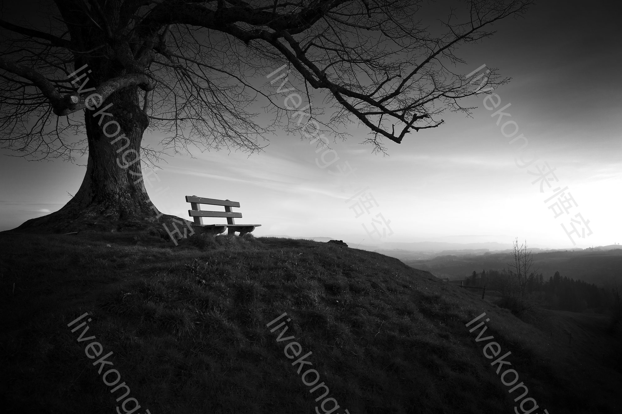 简介:  单色、大树、大树剪影、孤独、小山、景观、树、自然、长椅、黑白、