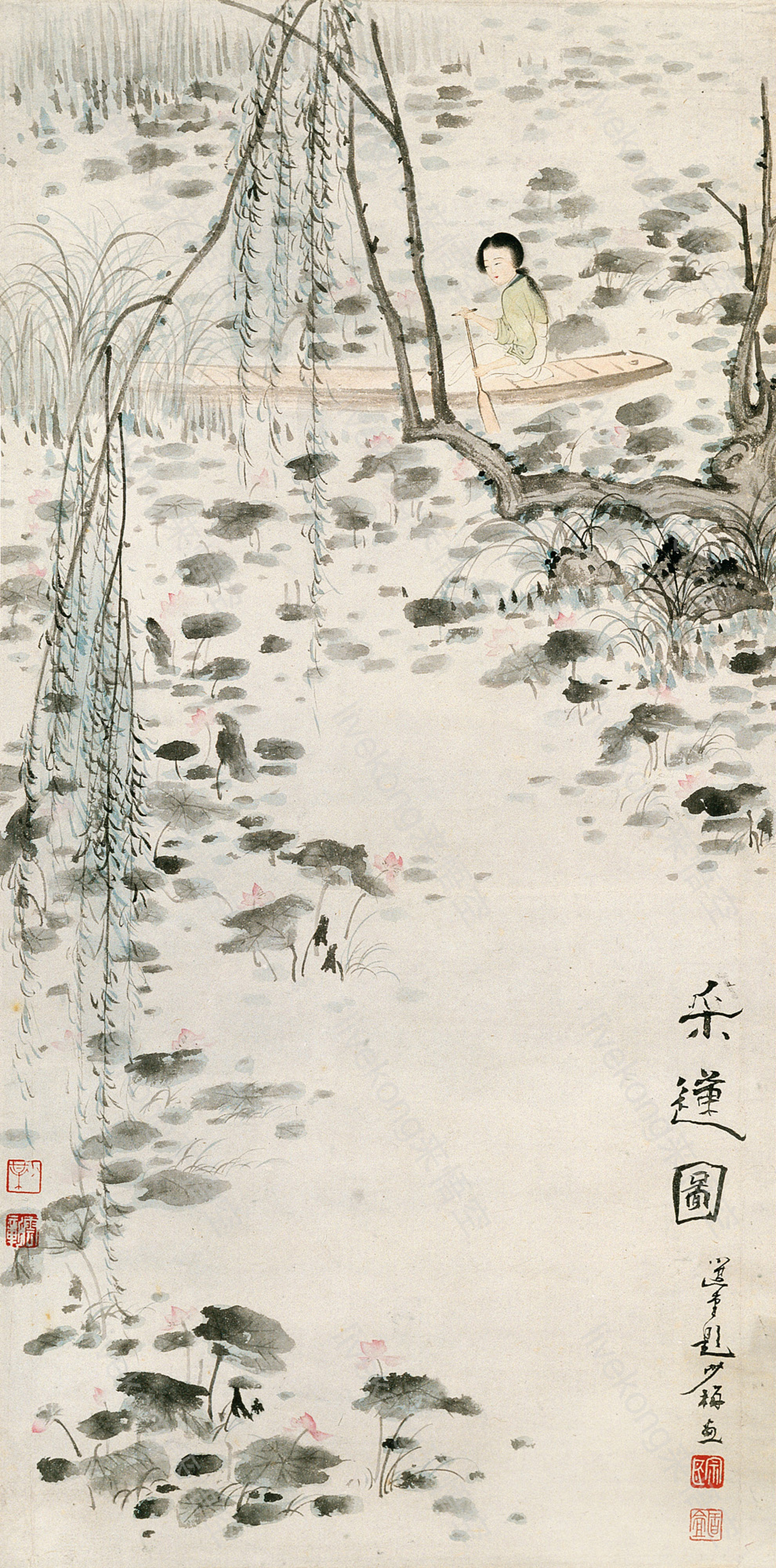 简介:  古画、古装美女、名画、国画、柳树、水墨国画、水墨画、荷叶、荷花池、采莲、陈少梅作品、