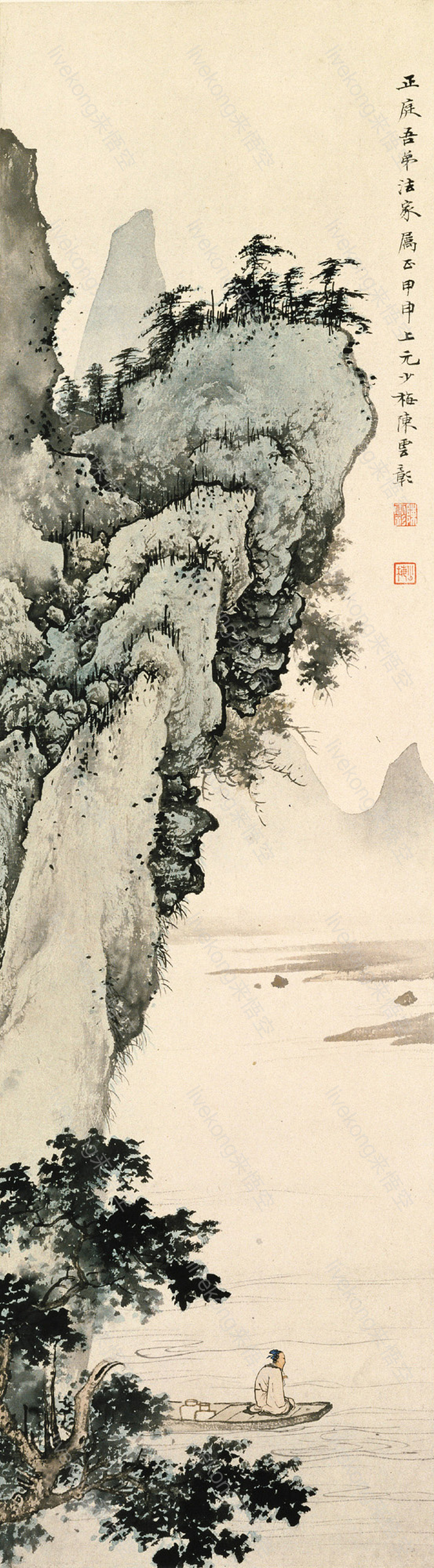 简介:  中国画、古人、古画、名画、国画、山水画、松树、水墨画、舟、船、陈少梅作品、青山绿水、高山、