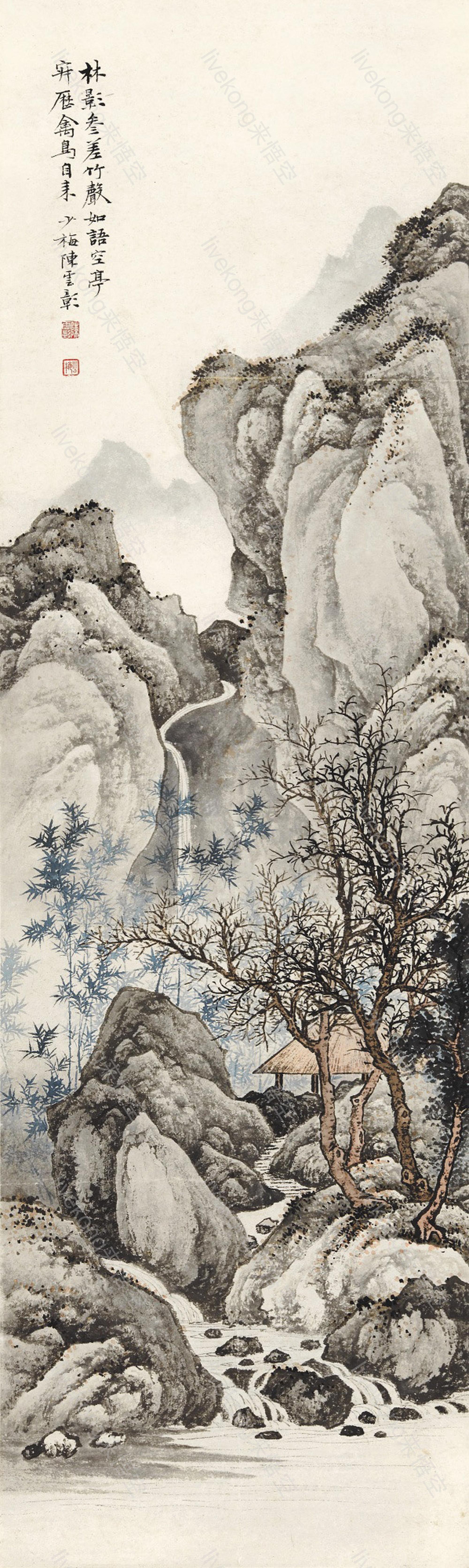 简介:  亭子、国画、小溪、山水画、松树、水墨画、河流、画家、绘画、艺术、艺术作品、陈少梅作品、高山、
