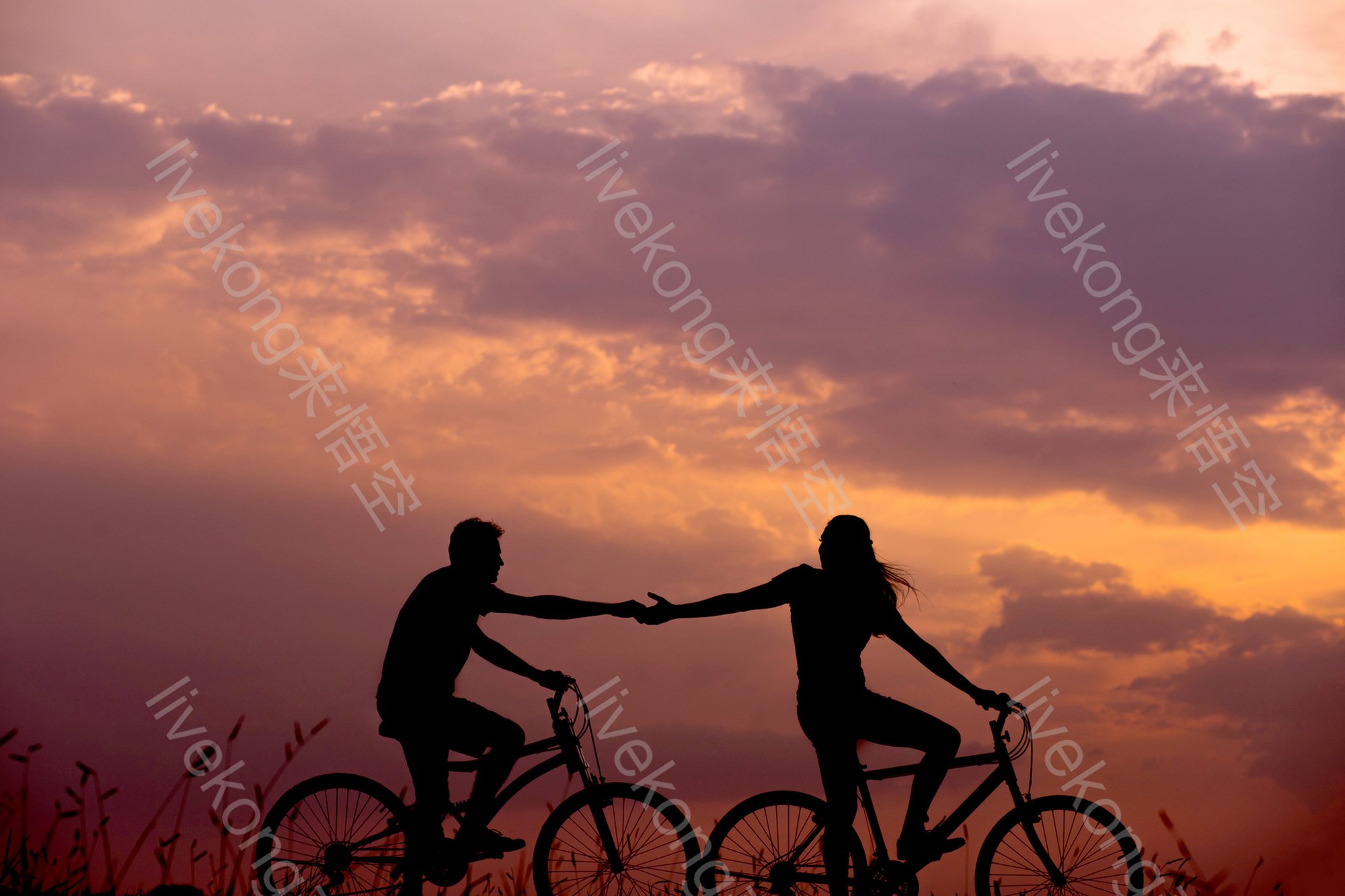 简介:  傍晚、剪影、夫妻、恋人、情人、情侣、日落、晚霞、浪漫、爱人、爱情、牵手、背光、自行车、骑车、黄昏、