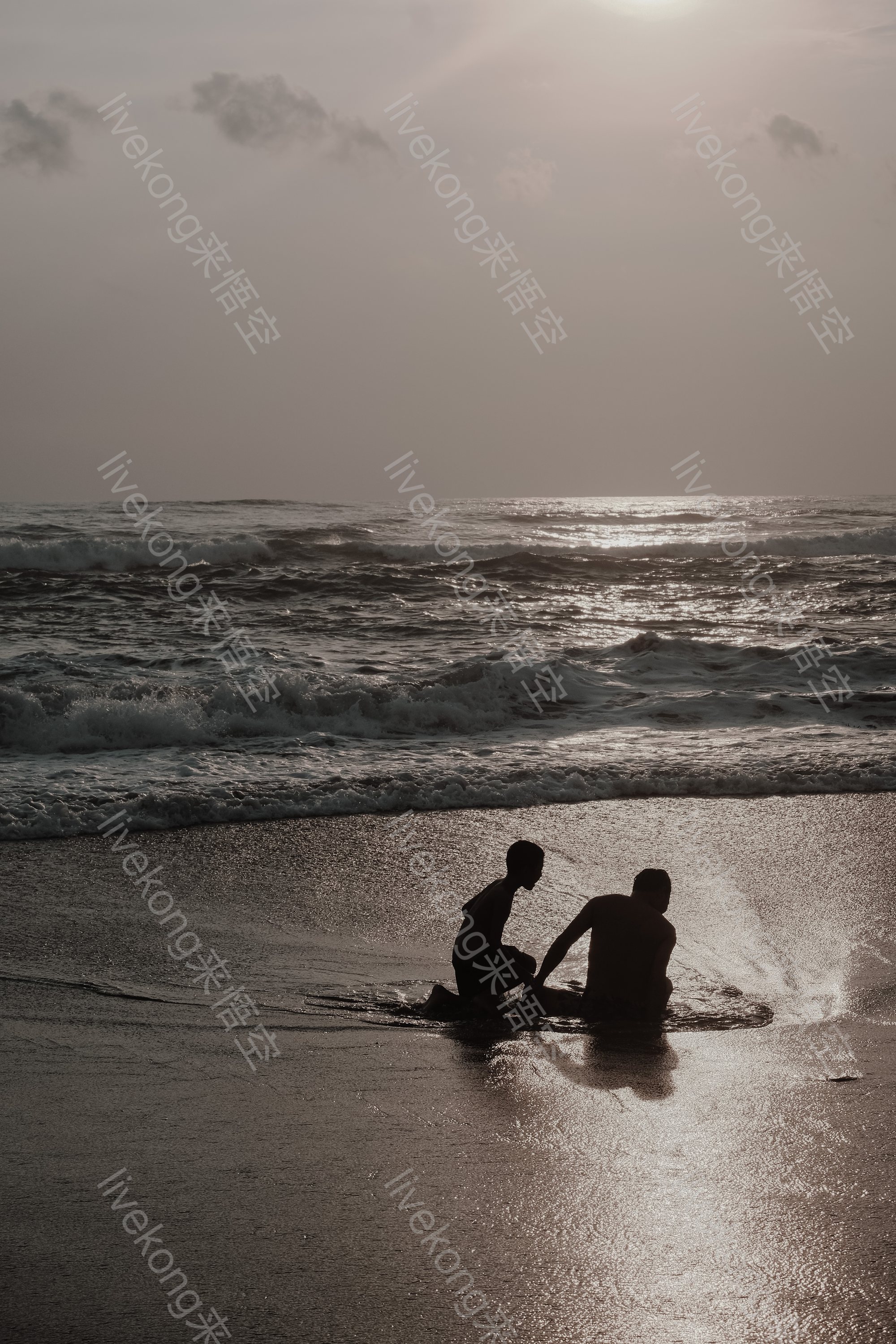 父子俩在海边玩耍
