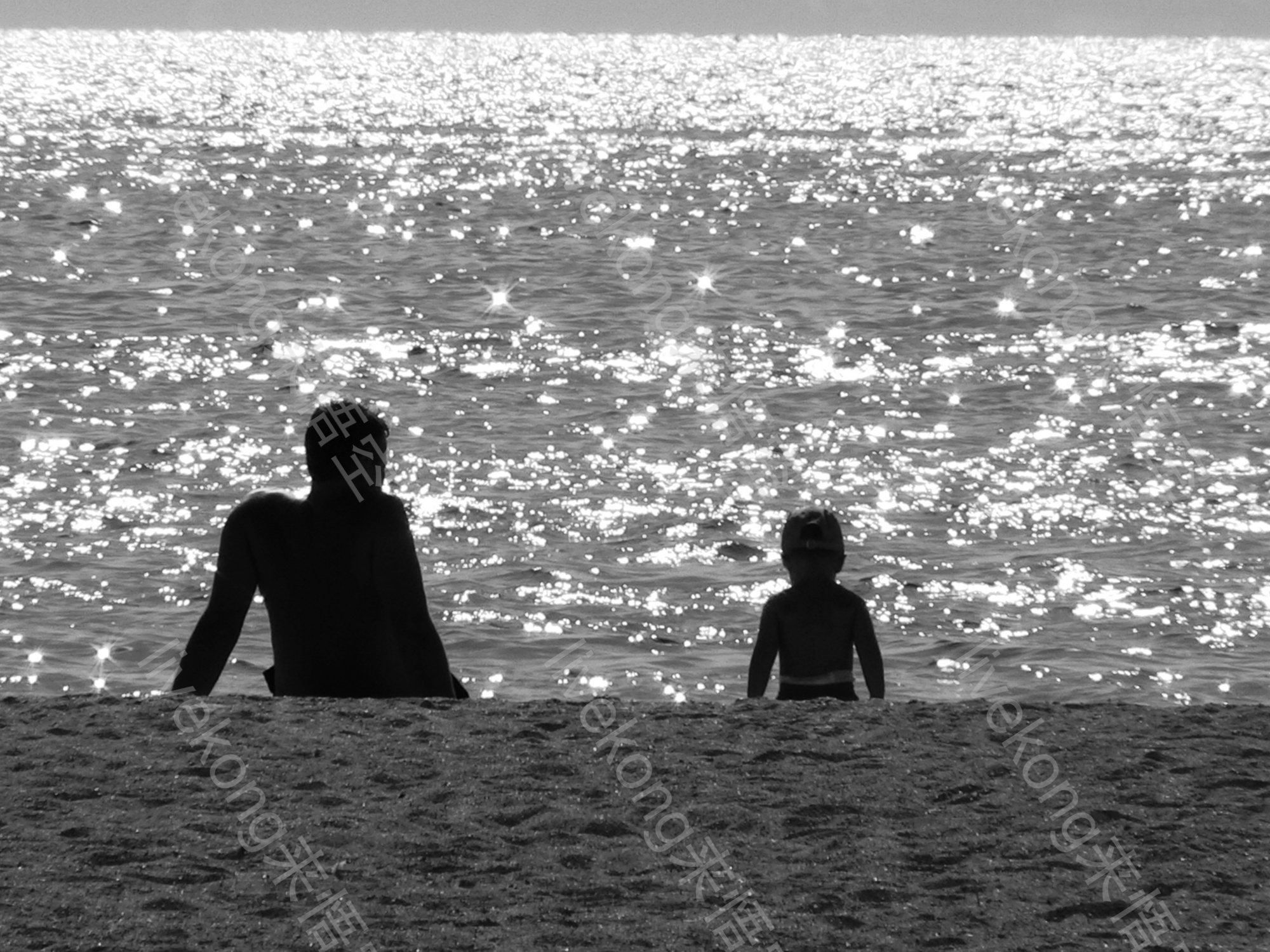父子一起在海边看风景
