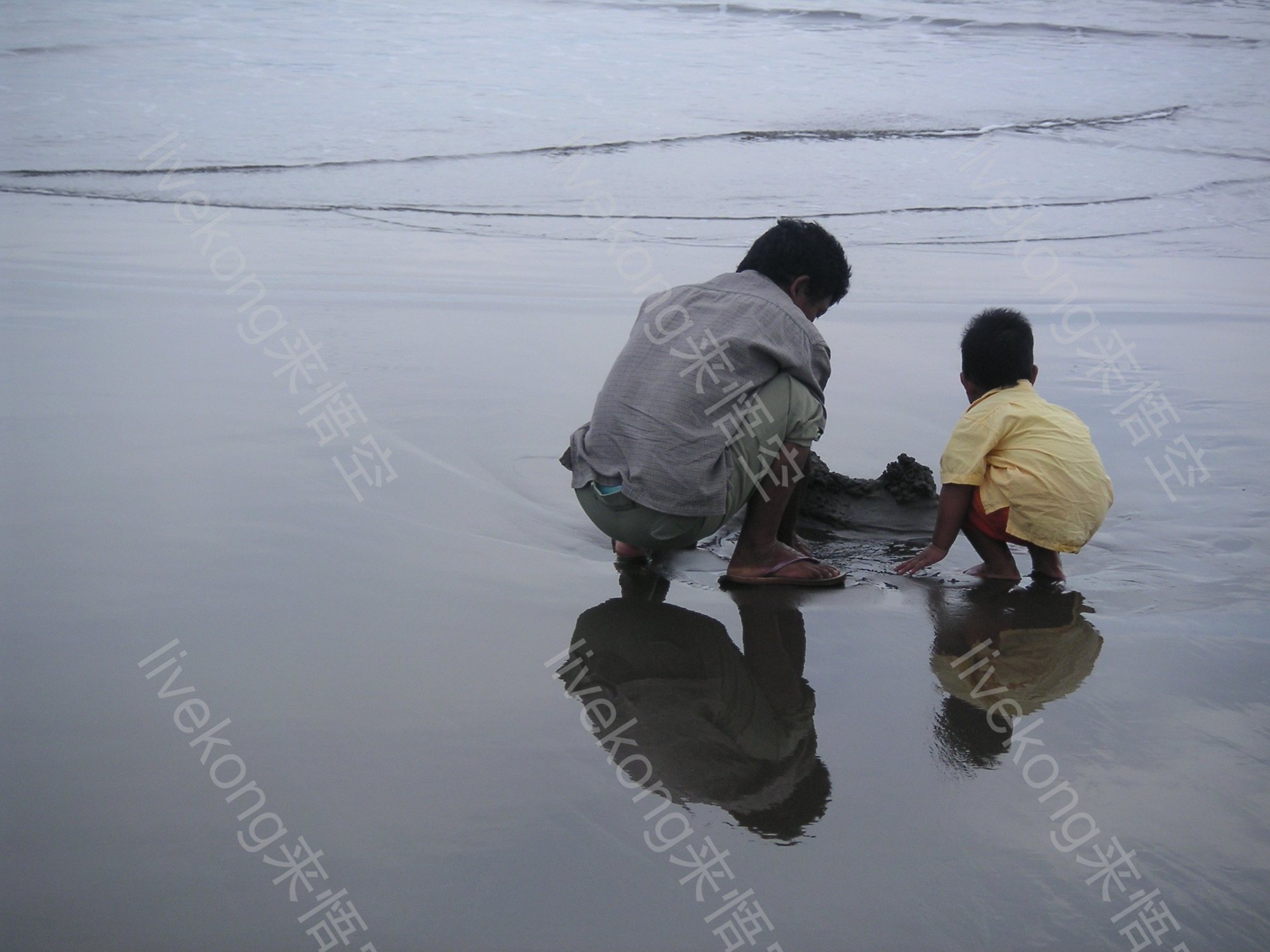 父亲和孩子在海边玩耍