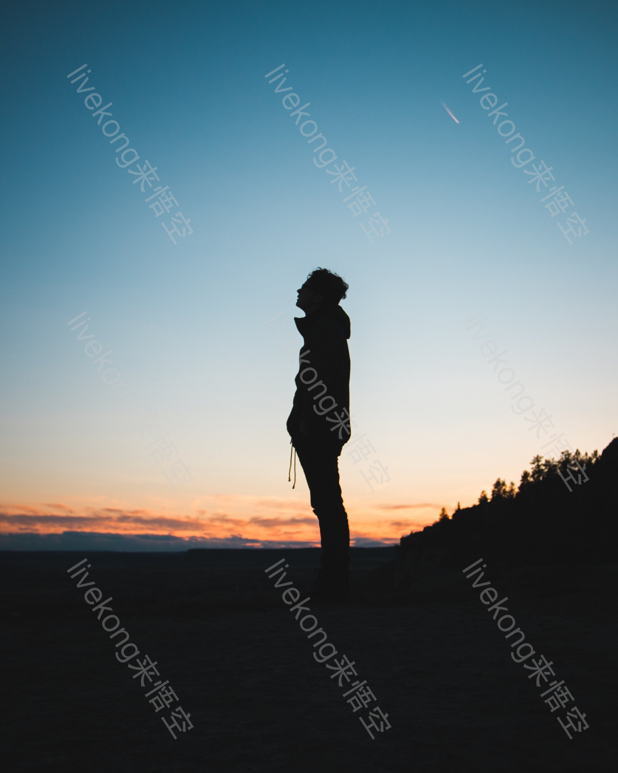 简介:  人物、仰望、傍晚、剪影、夜晚、夜景、夜色、希望、男人、男性、背光、
