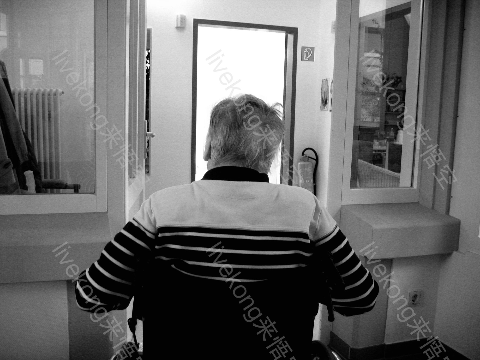 老人坐在轮椅上