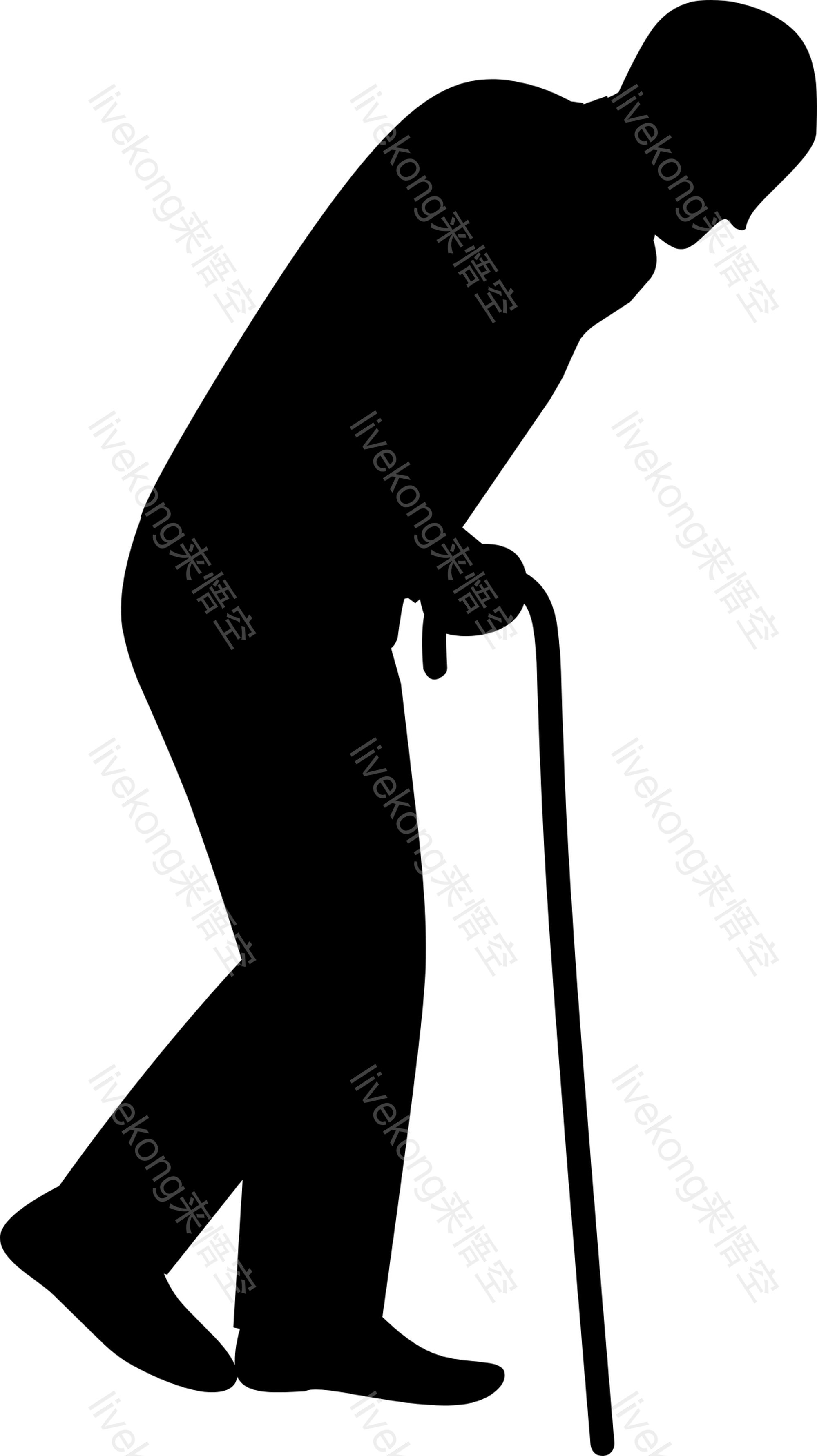 老人拄着拐杖透明素材