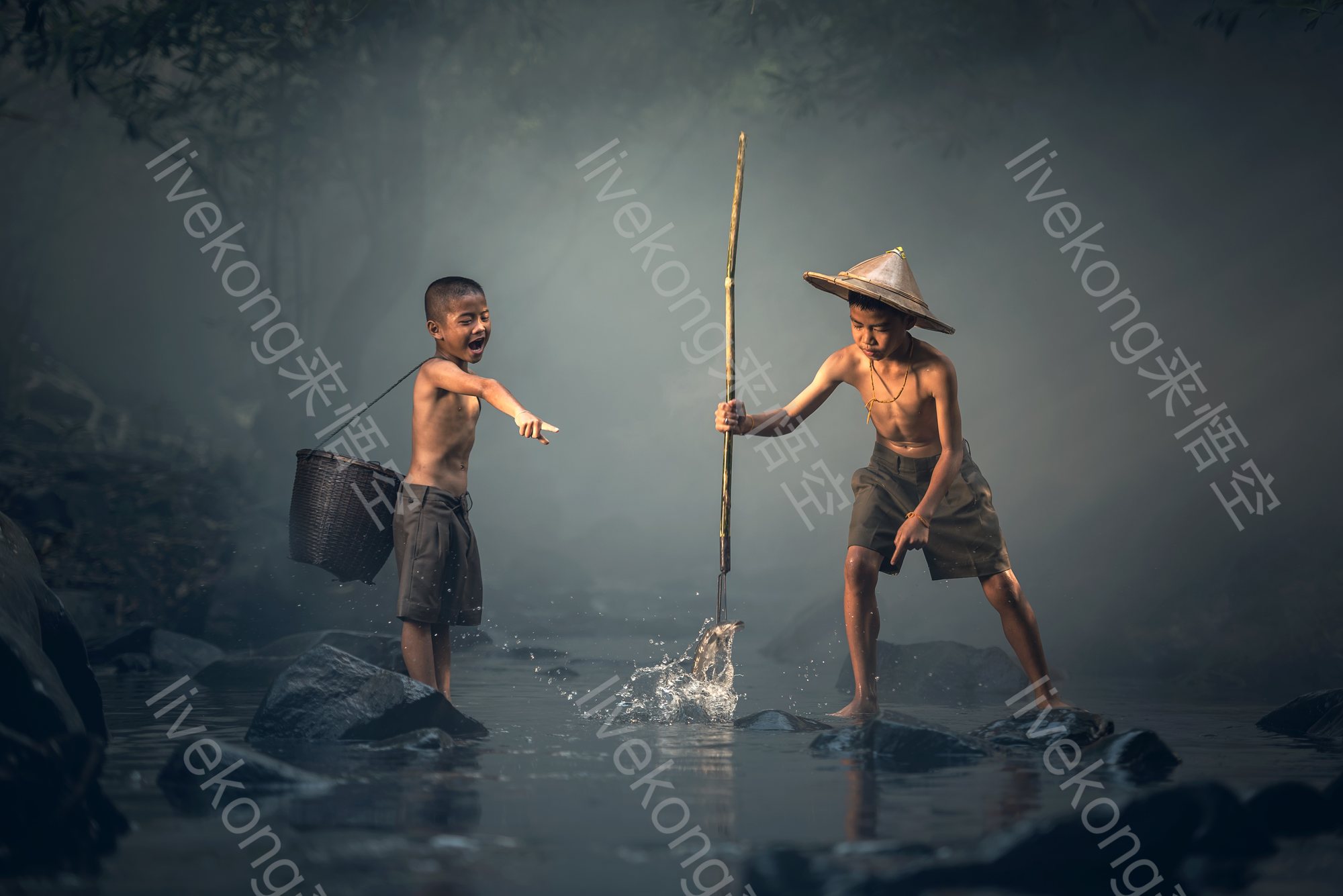 简介:  孩子、孩童、小溪、捕鱼、插鱼、渔民、溪水、溪流、