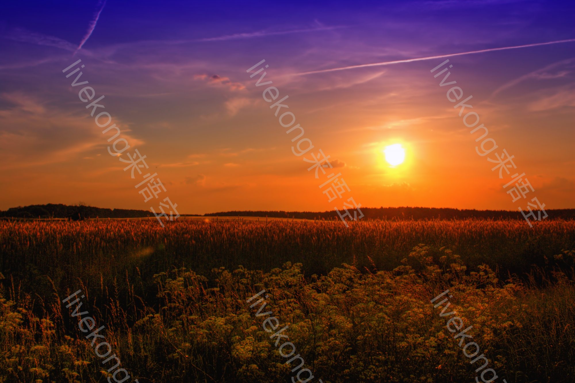 简介:  傍晚、夕阳、日出、日落、晚霞、暖阳、植物、火烧云、红日、美景、自然、花海、花草、风景、