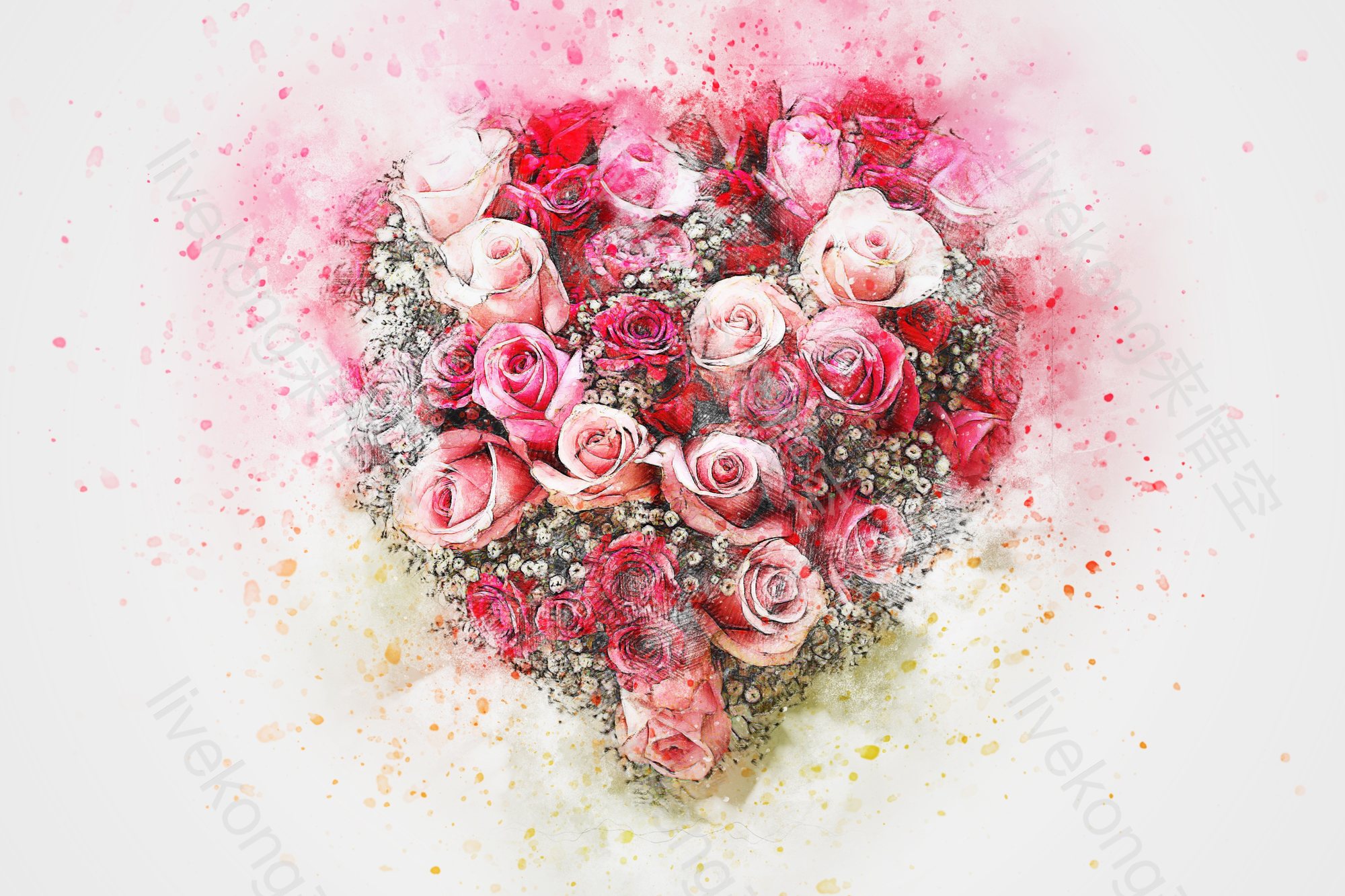 简介:  心形、情人节、植物、水彩、水彩画、浪漫、爱心、爱情、花卉、花朵、花束、