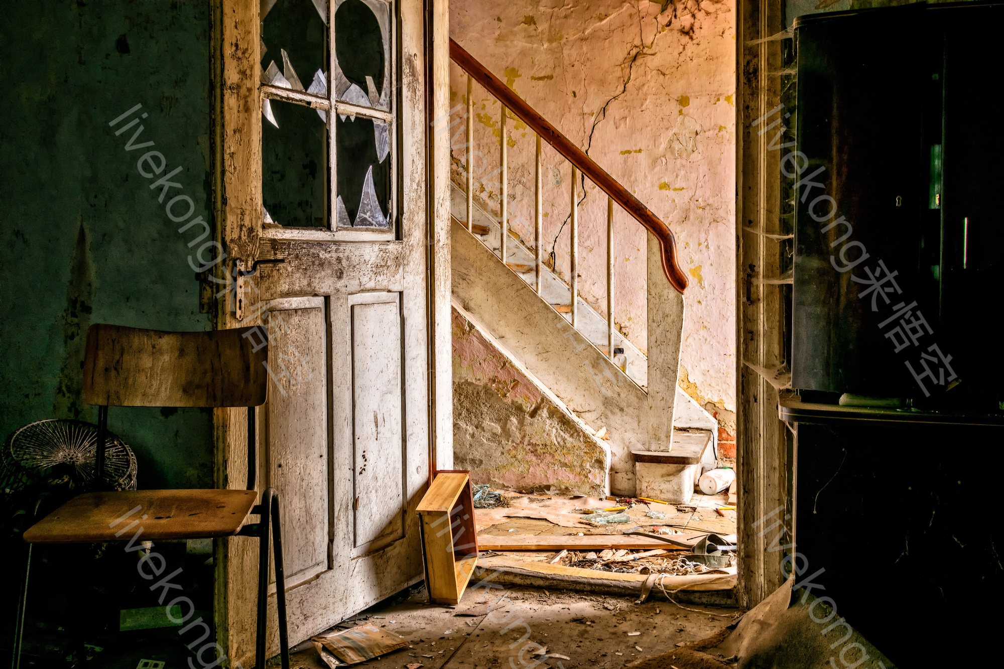 简介:  凌乱、古建筑、房屋、旧房子、楼梯、玻璃、破坏、破旧、破败、老房子、门、
