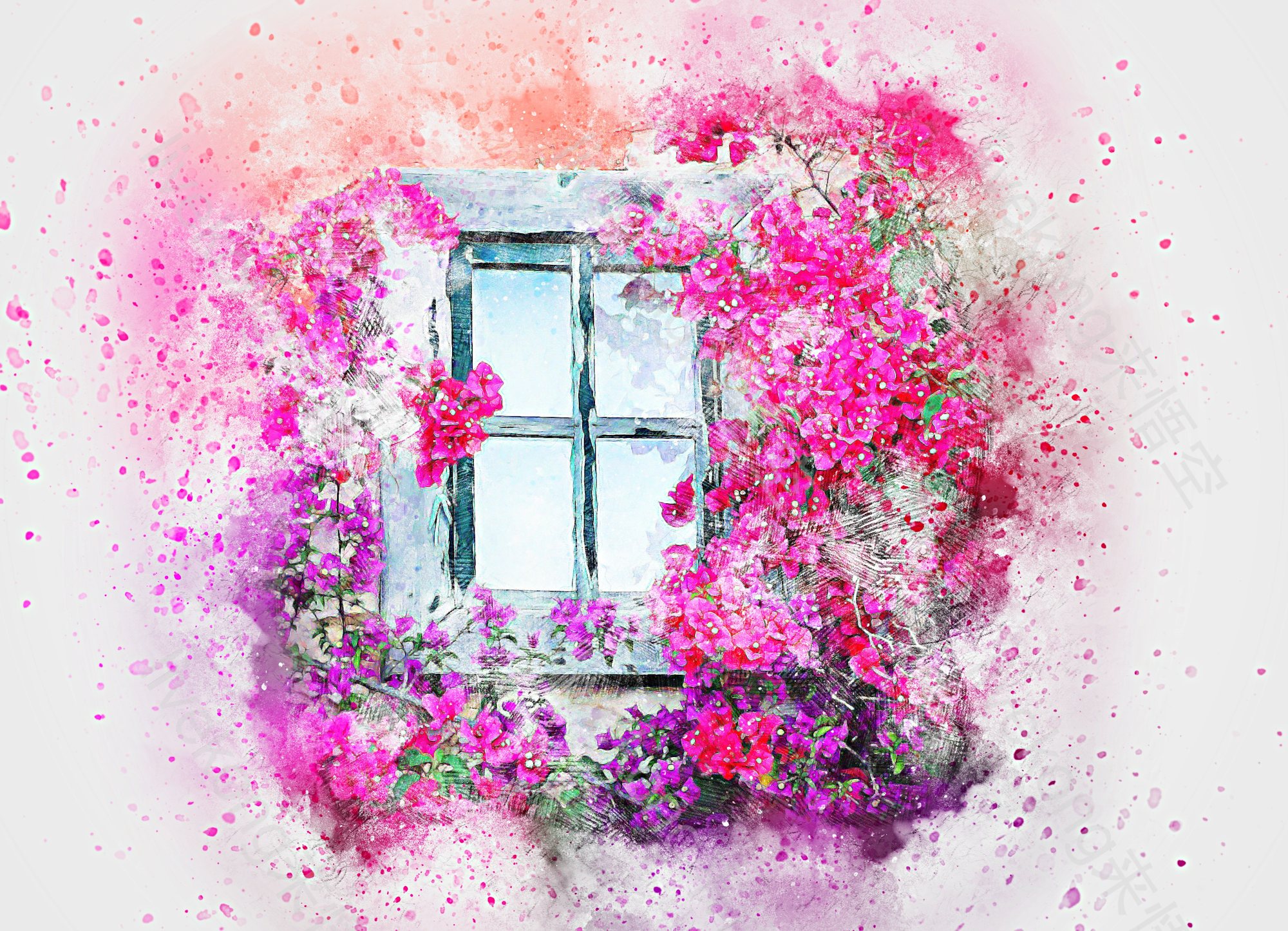 简介:  插画、水彩、盆景、盆栽、窗户、绘画、艺术、花卉、花朵、花盆、装饰、
