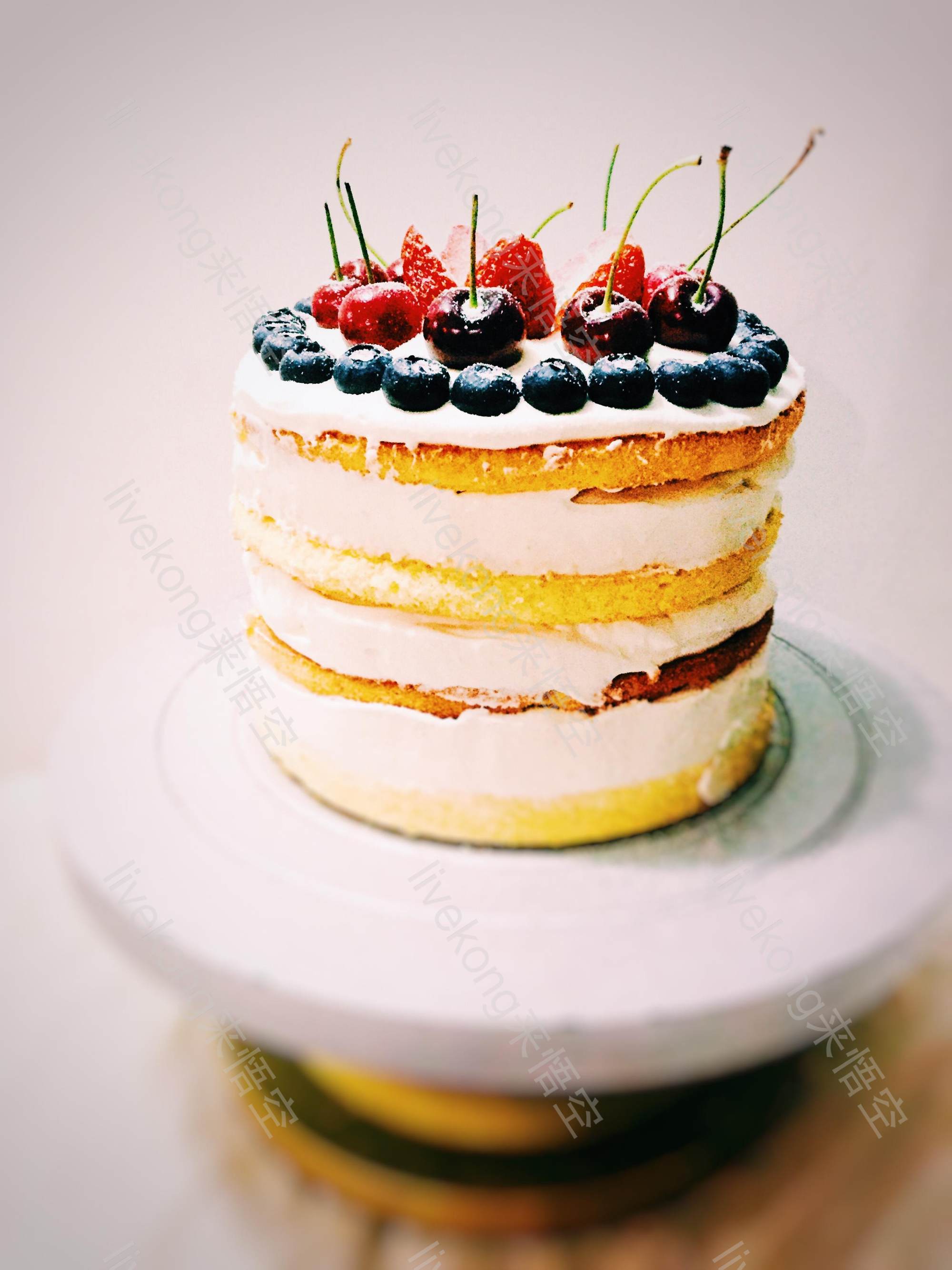 三层奶油夹心水果蛋糕