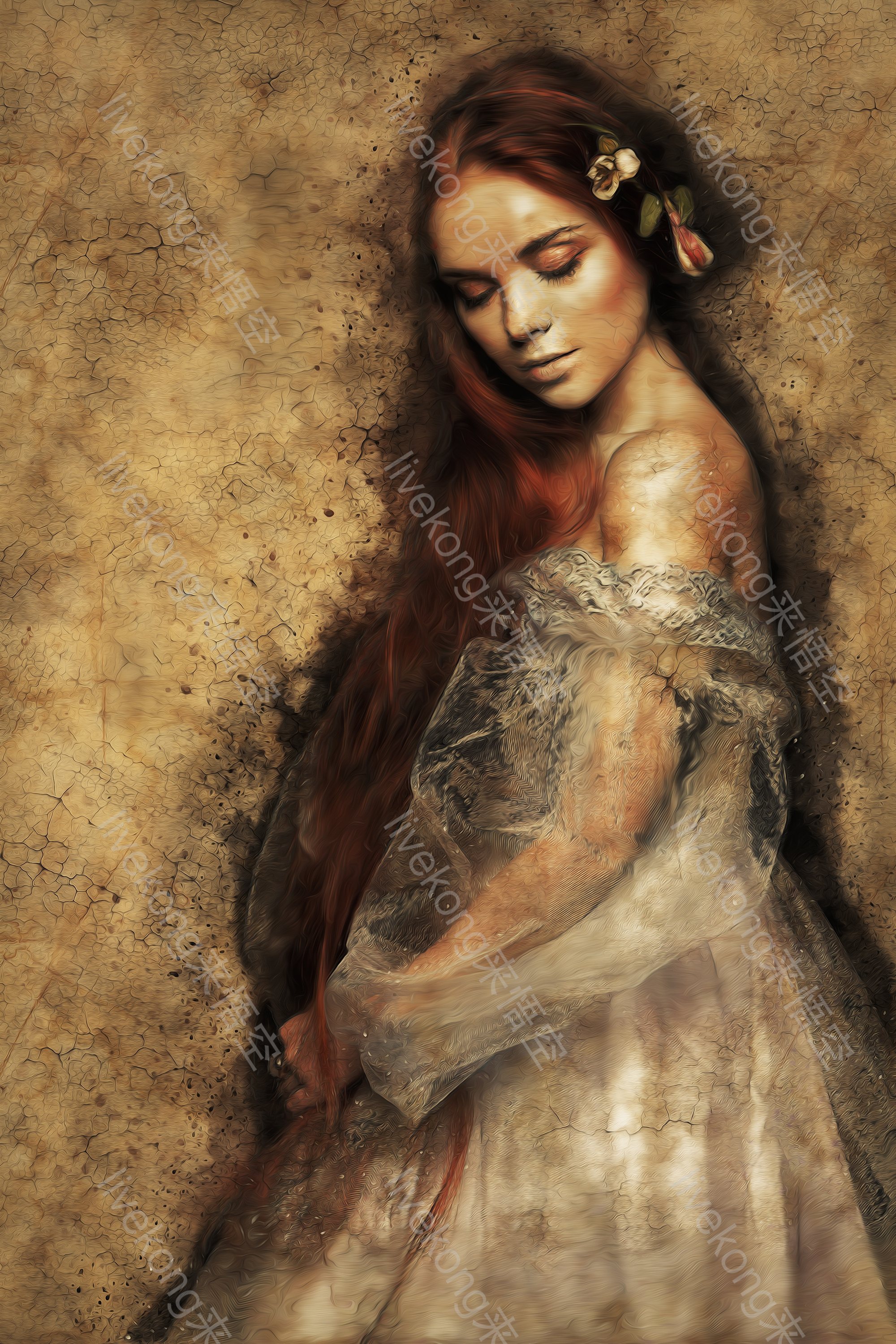 复古美女油画作品