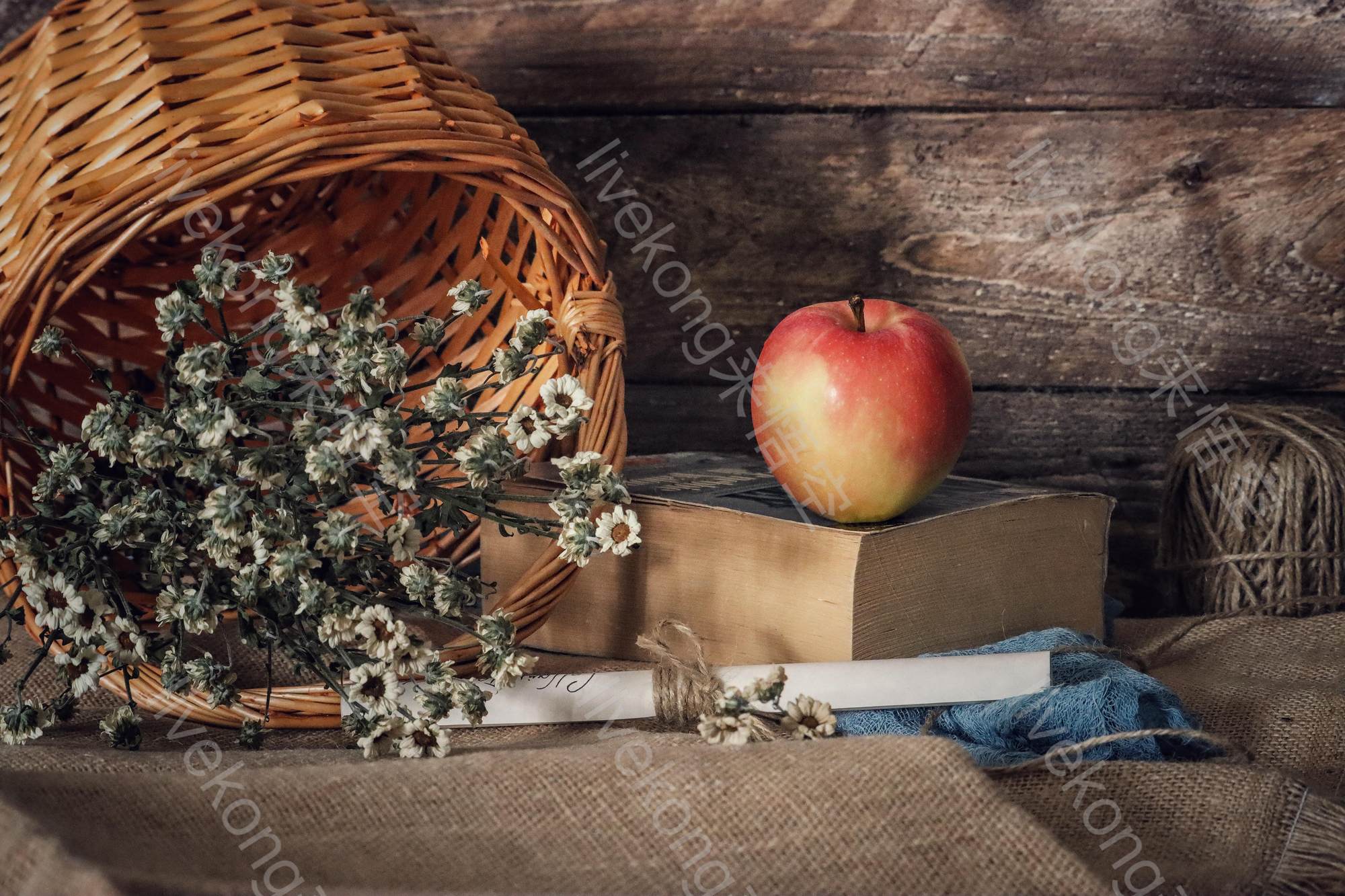 简介:  写生布景、唯美、复古、干花、文艺、水果、浪漫、绘画布景、老物件、花篮、苹果、麻布、麻绳、