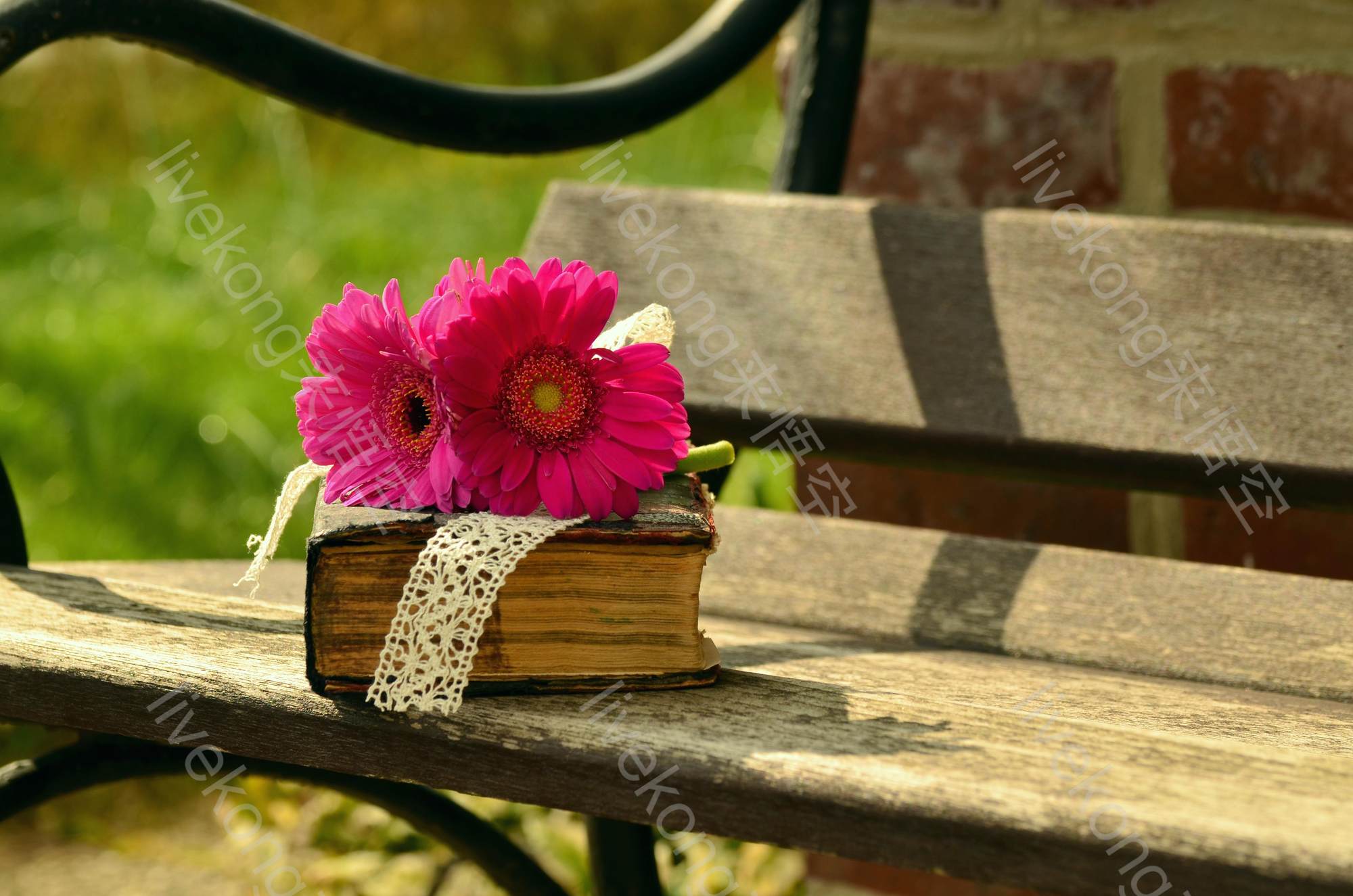简介:  书、公园、唯美、复古、文艺、植物、浪漫、红色花、花卉、花朵、长椅、