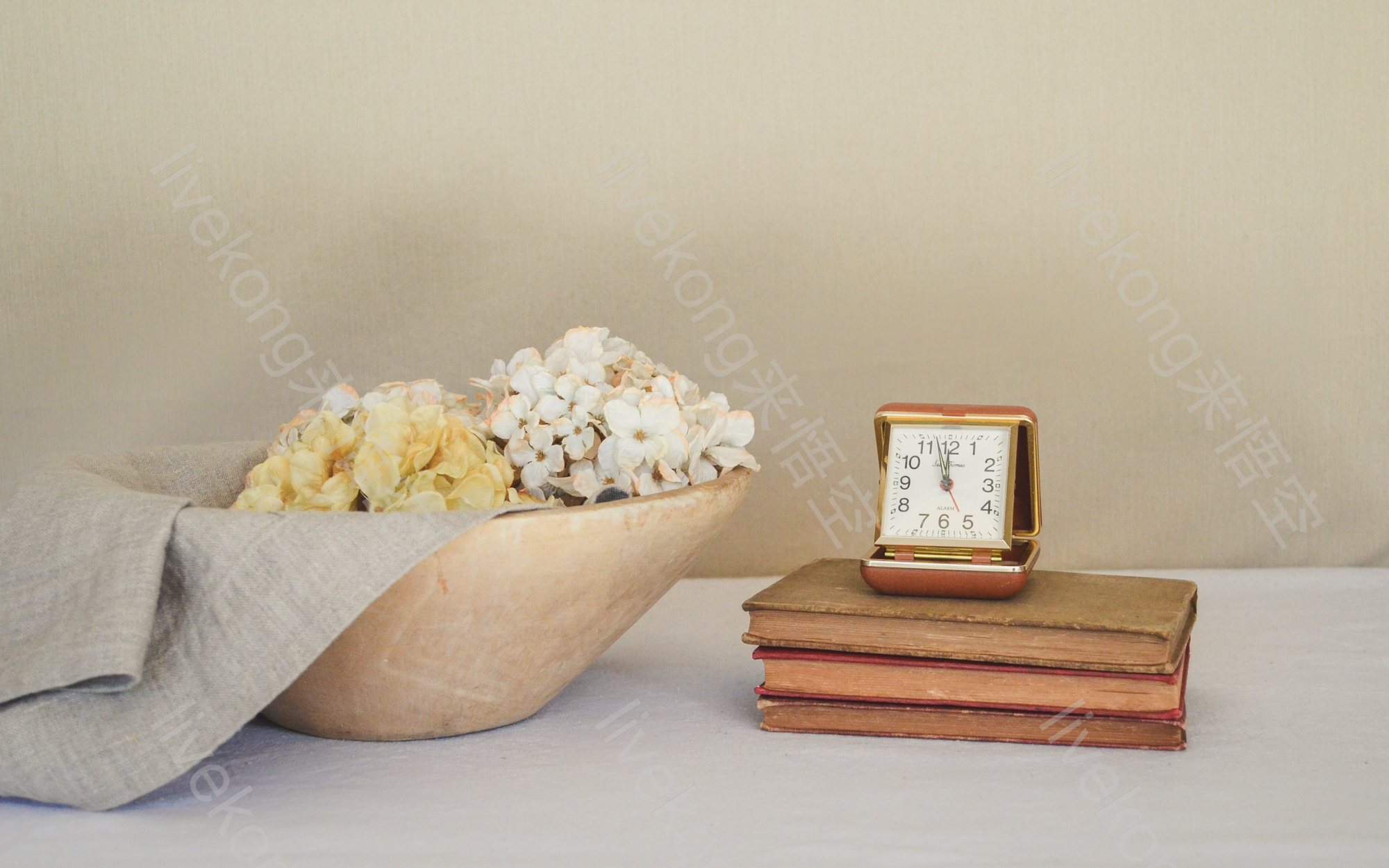 简介:  书、书桌、书籍、干花、时间、花卉、花朵、表、钟表、闹钟、