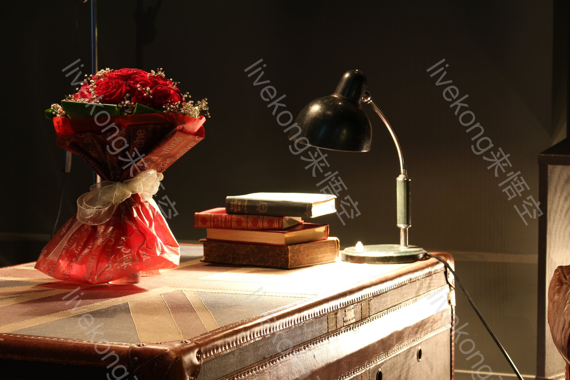 简介:  一束花、书、书房、书本、书桌、台灯、名著、文学、文艺、浪漫、灯光、玫瑰花、花束、