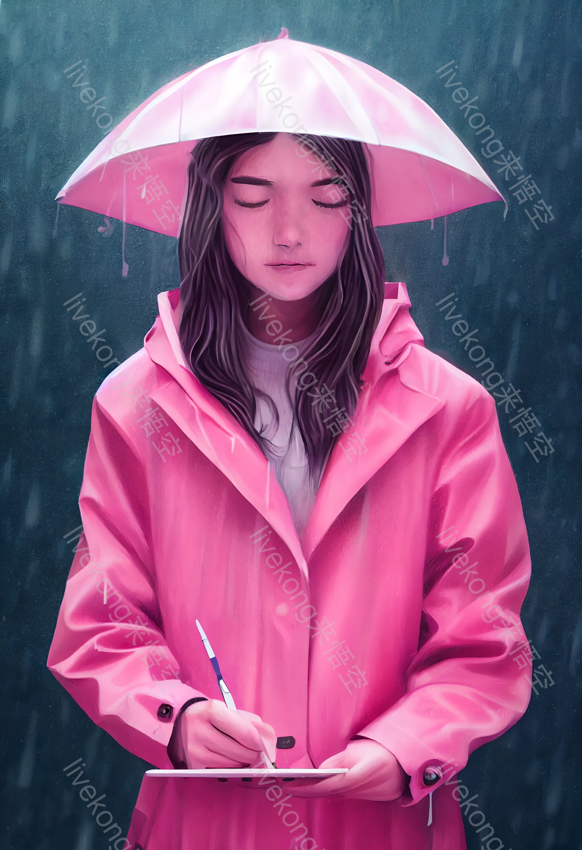 简介:  下雨、人物、女孩、手绘、插图、插画、美女、雨伞、