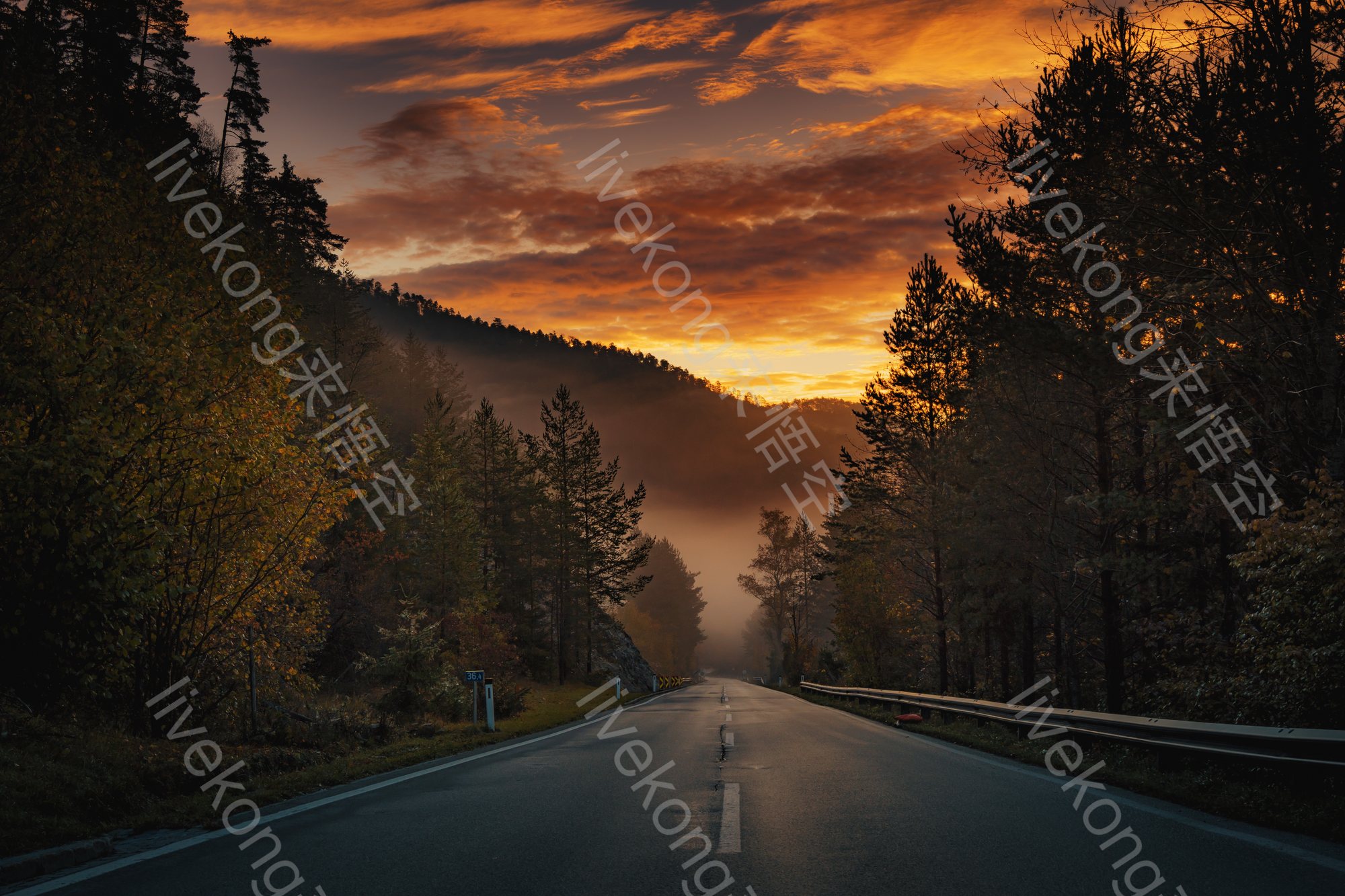 简介:  傍晚、公路、晚霞、树林、森林、火烧云、自然、路、郊外、风景、马路、黄昏、