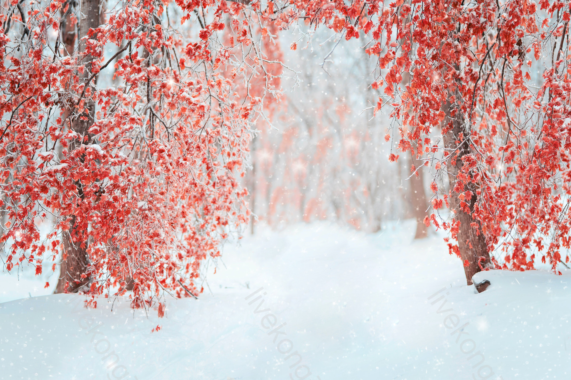 简介:  冬天、冬季、唯美雪景、大树、寒冷、木棉、植物、红色花、自然风景、花卉、雪天、雪景、