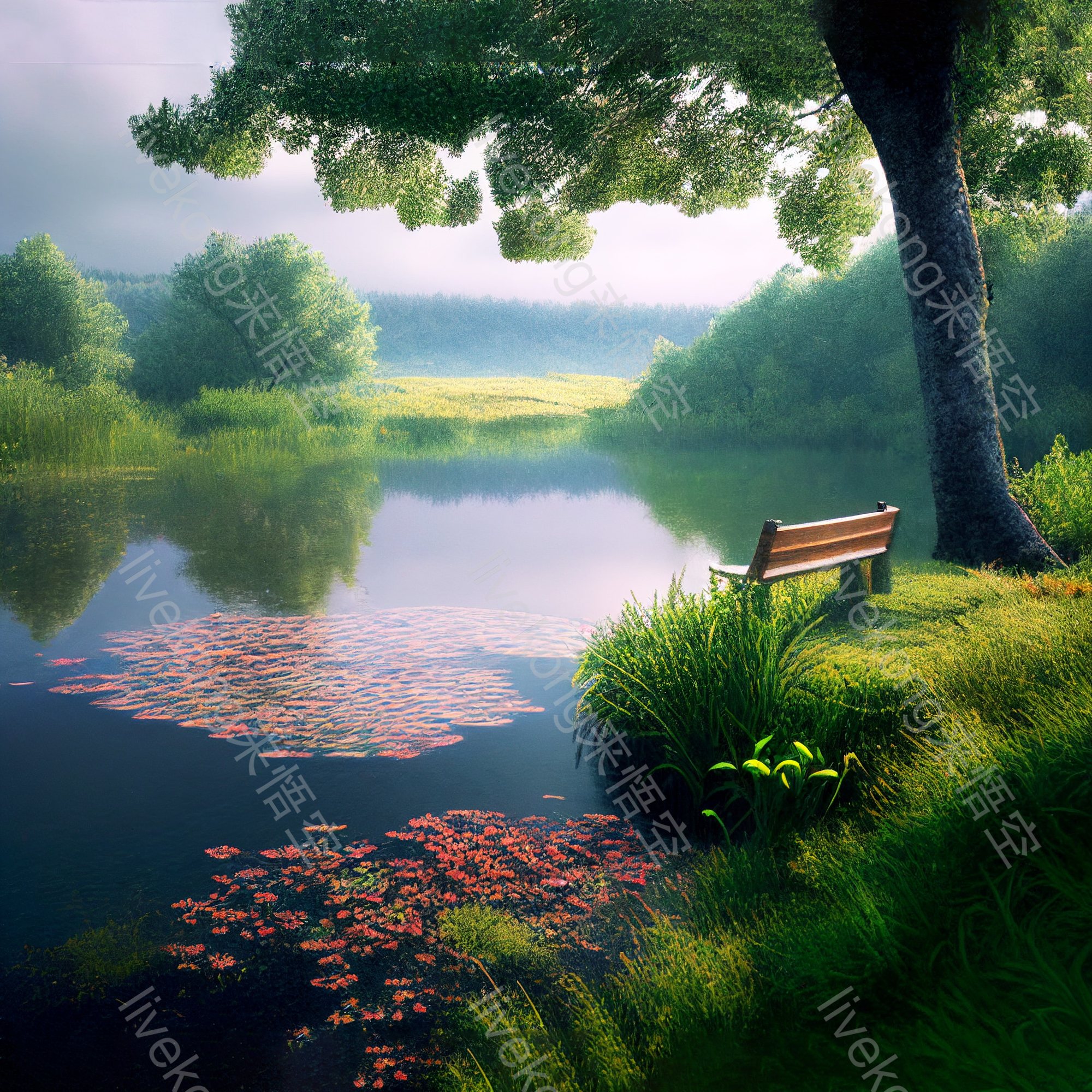 简介:  夏天,大树,春天,森林小河,森林湖水,植物,绿色,美景,荷花,,风景插画,风景插图