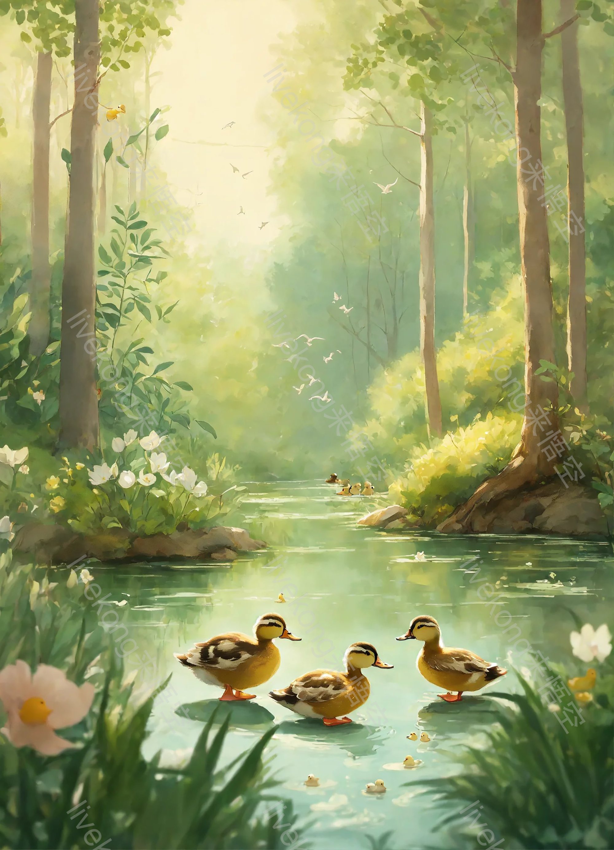 简介:  鸭子,小鸭子,森林小溪,森林小河,插画,插图,风景插图,风景插画