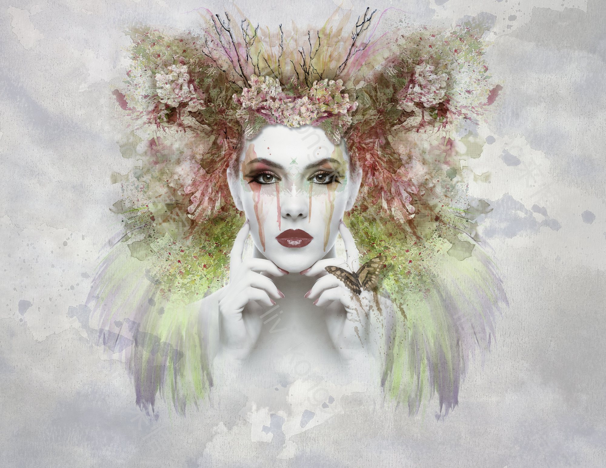 简介:  人物画、水彩作品、水彩画、水彩美女、美女、美妆、艺术、艺术作品、花朵、花环、